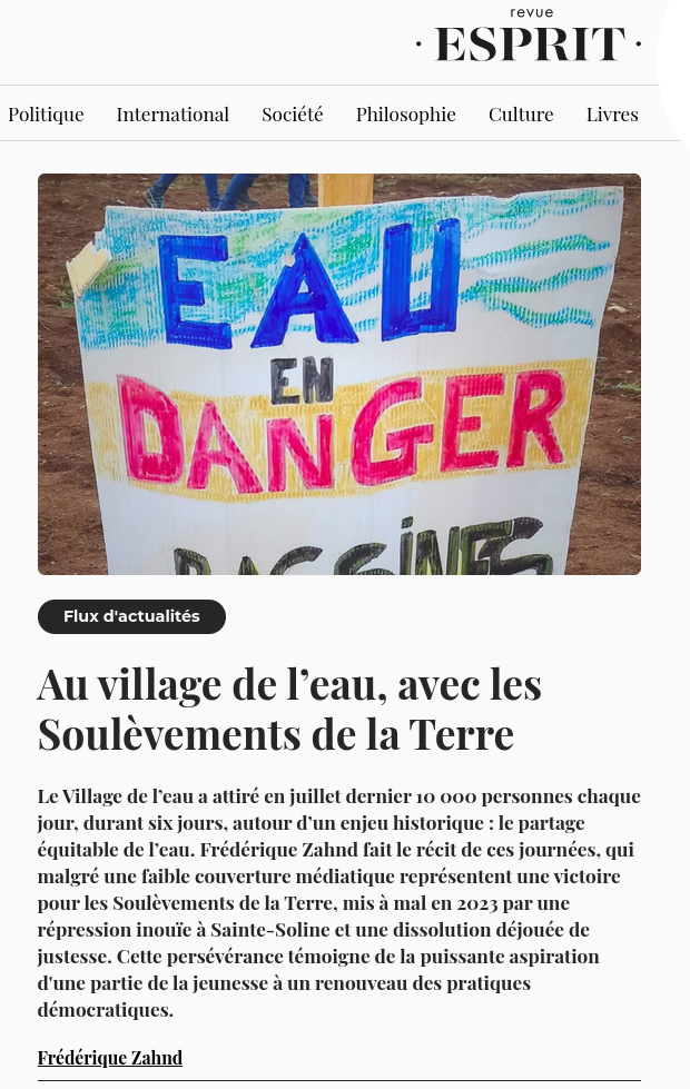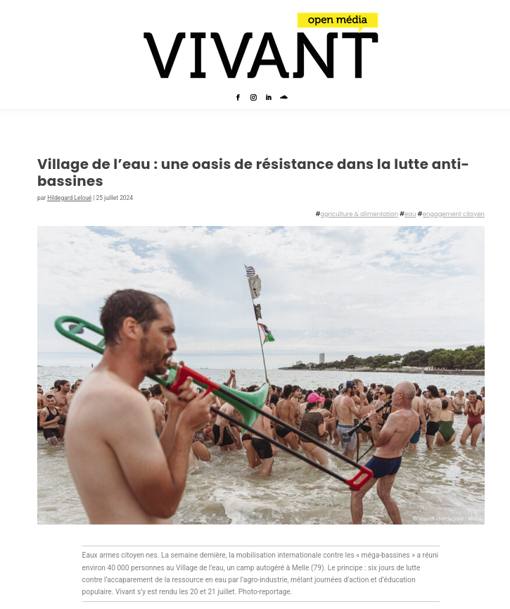 Le Village de l’eau à l‘été 2024 qui a aussi réuni des milliers de personnes et collectifs autour de dizaines de thématiques de lutte nationales mais également internationales lors de 4 jours rythmés par des formations et conférences.
