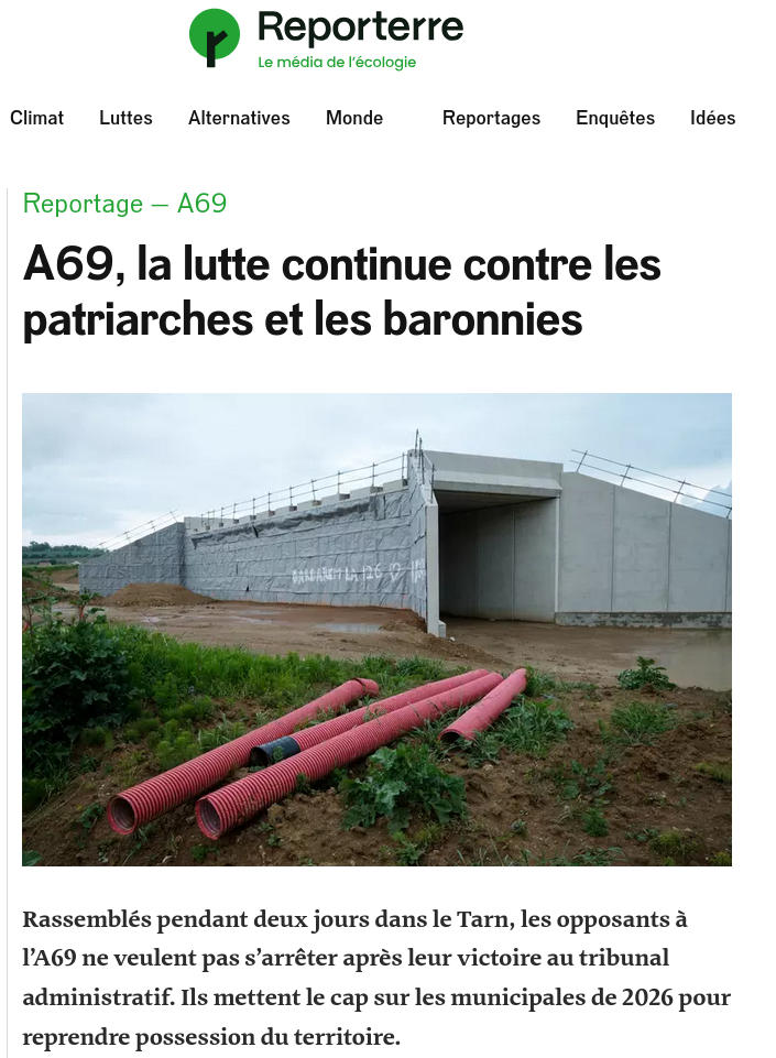 Une idée est en germes pour un rassemblement public au printemps, sur les questions de routes, de béton, de la mobilité, … sur le tracé de l’A69, nous reviendrons vite vers vous pour vous donner des infos là dessus aussi !”