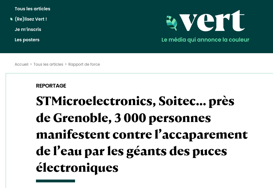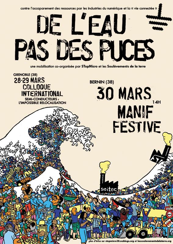 Les 28 et 29 mars à Grenoble, le collectif Stop Micro a réuni près de 3000 personnes pour deux journées de colloque international suivi d’une manifestation le 1er avril contre les industries polluantes de production de semi-conducteurs