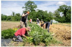 Nous avons réalisé une dizaine de chantiers sur l’année 2024, à peu près une fois par mois et un peu moins l’été. La communication sur les chantiers est réalisée lors des distributions d’aide alimentaire du réseau de ravitaillement à la Ferme de la Harpe chaque vendredi.