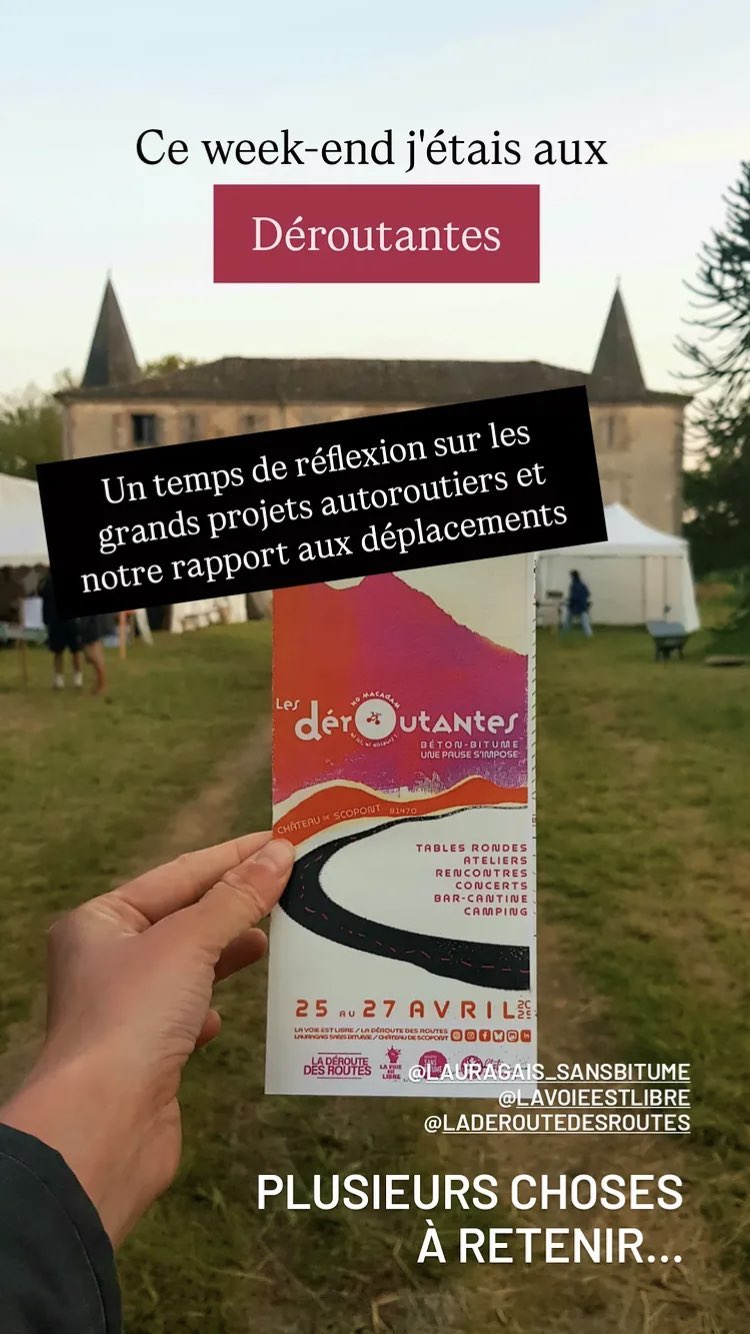 Les Déroutantes ont réuni du 25 au 27 avril 2025 près de 2000 personnes à proximité du tracé de l’A69 pour des rencontres de discussion et festives de mobilisation autour des projets routiers, des filières de production industrielle de béton et bitume